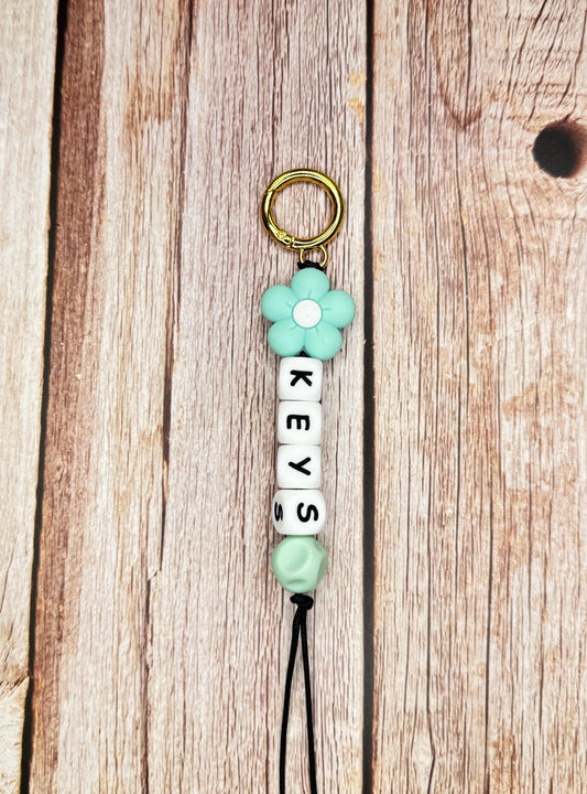 Customizable Name Keychain - Flower Bead & Silicone Letter Beads Golden Personalized Key Ring