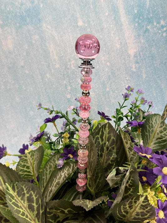 Fairy Garden Suncatcher Stakes – 15” Beaded Plant Decor with Crystal Bubble Ball Topper