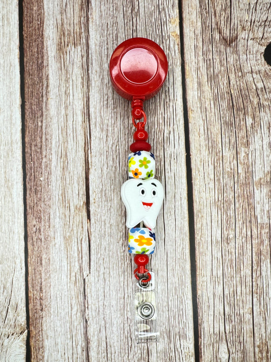 Dental Badge Reel | Retractable ID Holder for Dental Hygienists, Assistants Office Staff | Customizable Bead Colors
