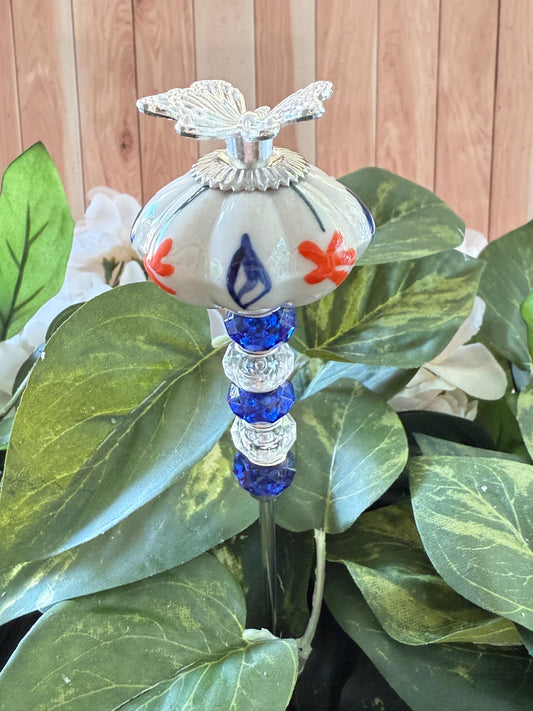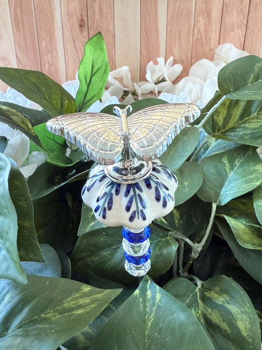 Butterfly Garden Suncatcher Stakes – 10” Beaded Plant Decor with Ceramic and metal bug topper