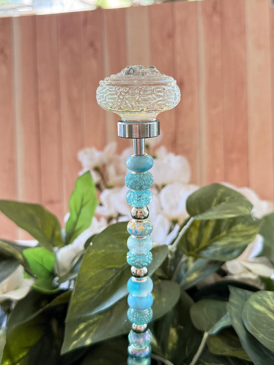 Blooming Glass Garden Suncatcher Stakes – 15” Beaded Plant Decor with Glass Topper
