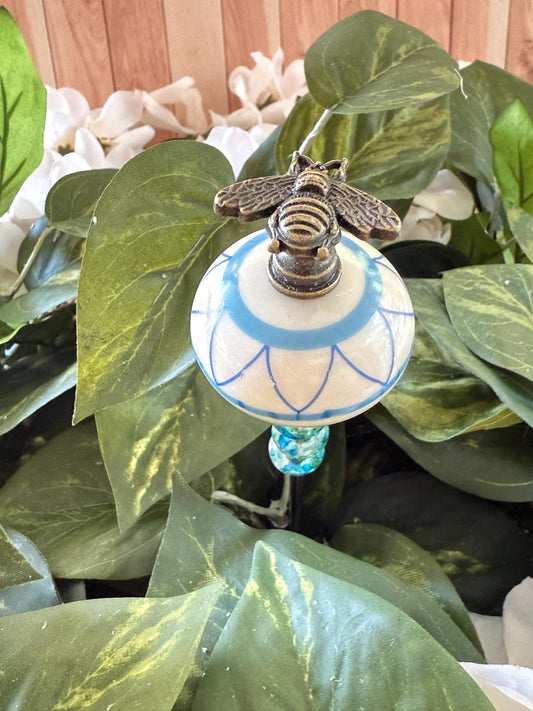 Bumble Bee Garden Suncatcher Stakes – 10” Beaded Plant Decor with Ceramic and metal bug topper