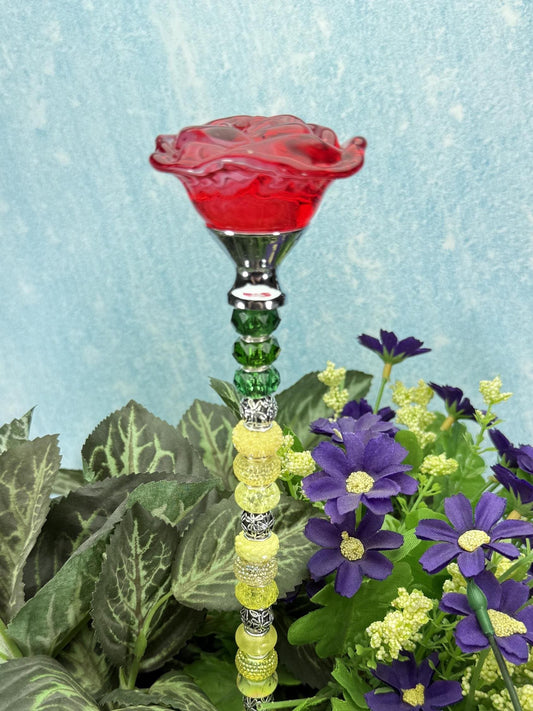 Glass Rose Garden Stake – Hand-Beaded Plant Art, Cottage Decor