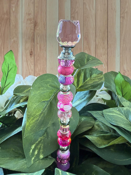 Mini Rose Garden Suncatcher Stakes – 10 Beaded Plant Decor with Glass Rose Topper