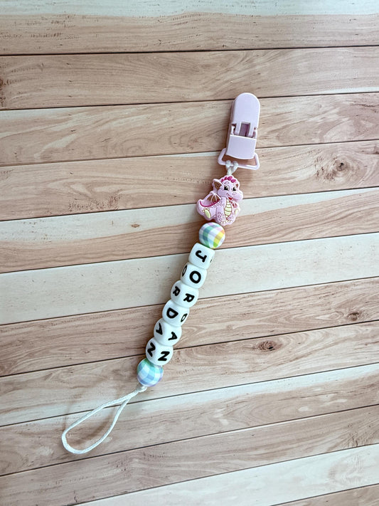 Personalized Dragon Pacifier Clip: Silicone Baby Soother, Custom Name