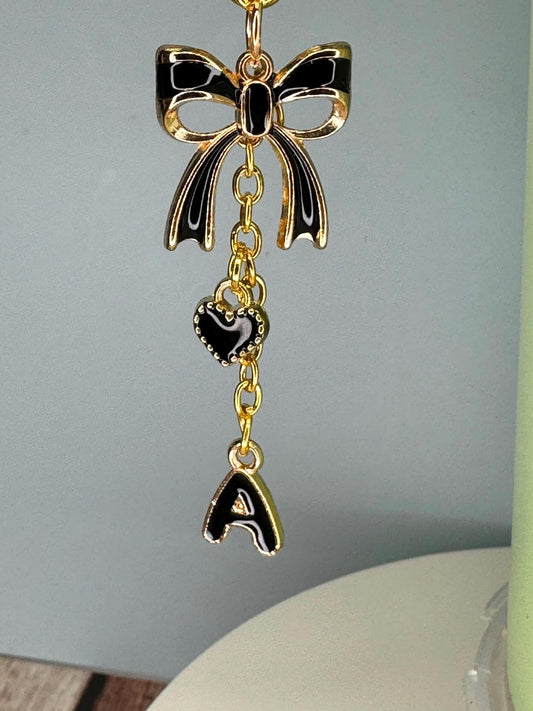 Personalized Initial Tumbler Charm: Enamel Bow & Heart, Gold Chain Stanley Cup Accessory