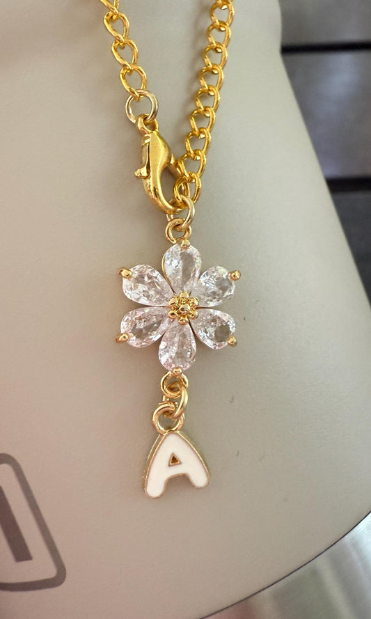 Personalized Glass Flower Tumbler Charm: Custom Initial Gold Clip