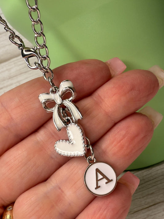 Personalized Initial Tumbler Charm: Enamel Bow & Heart, Stanley Cup Accessory