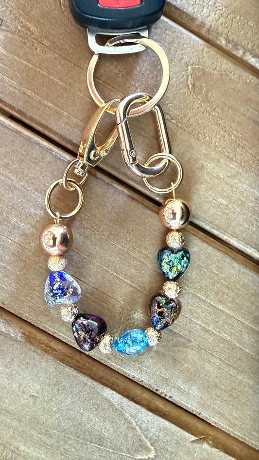 Dragonfly Keyfob Purse Clip | Glass Heart Beads with Gold or Silver Hardware | Convertible Wristlet & Purse Décor