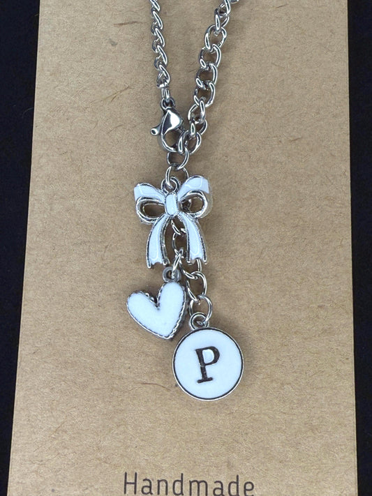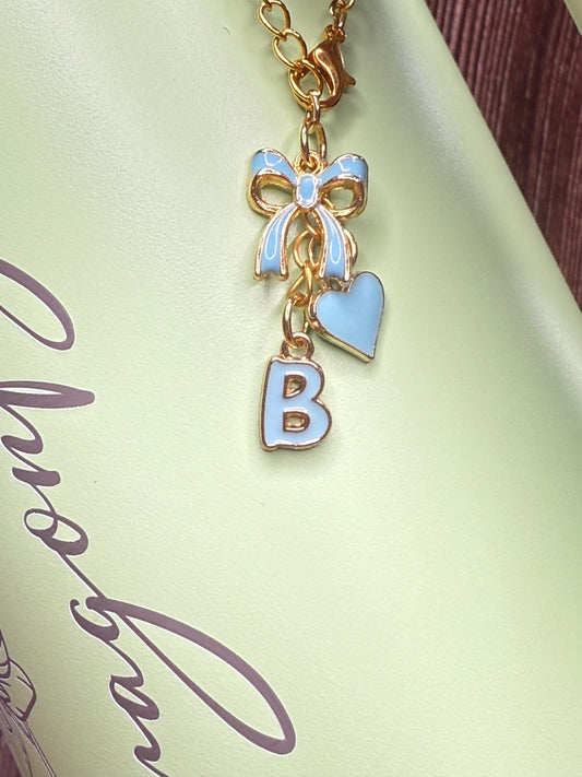 Personalized Initial Tumbler Charm: Enamel Bow & Heart, Gold Chain