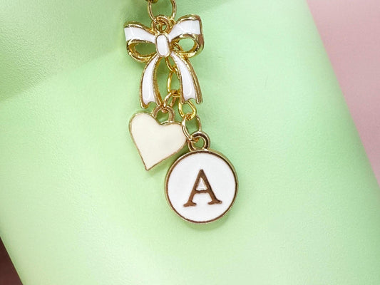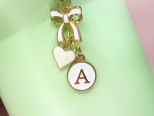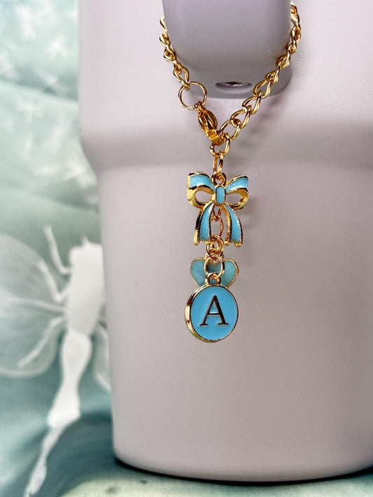 Personalized Initial Tumbler Charm: Enamel Bow & Heart, Gold Chain Stanley Cup Accessory