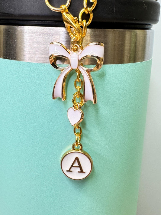 Personalized Initial Tumbler Charm: Enamel Bow & Heart, Stanley Cup Accessory