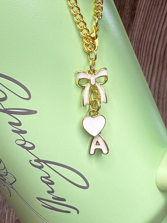 Personalized Initial Tumbler Charm: Gold Chain Bow & Heart - Stanley Cup Accessory
