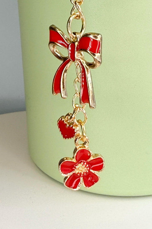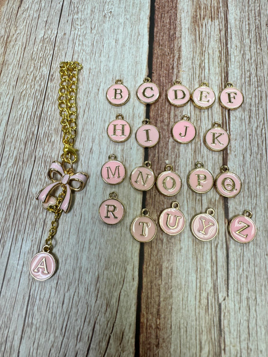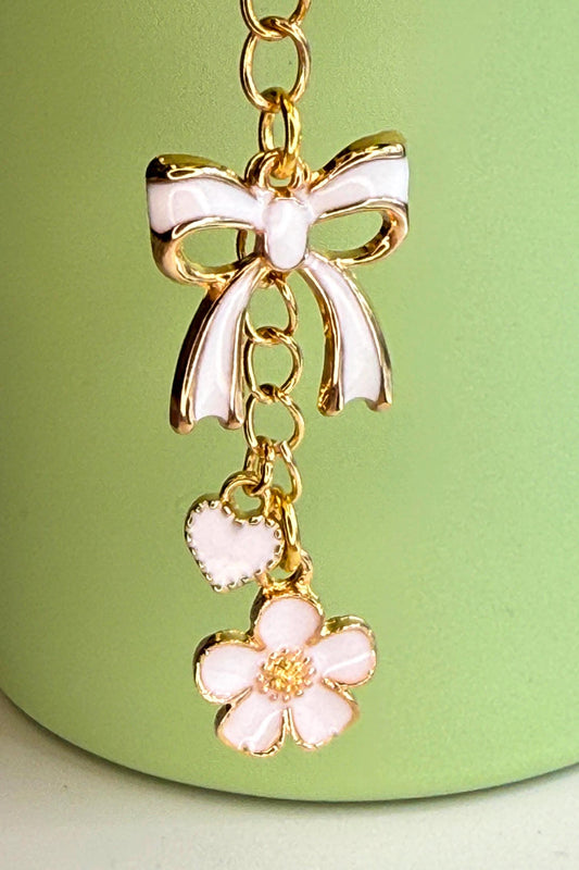 Monogram Initial Tumbler Charm: Gold Bow & Heart Bag Accessory