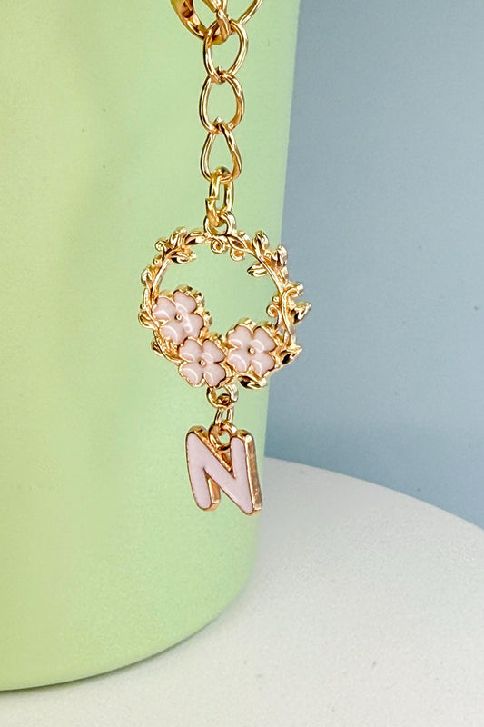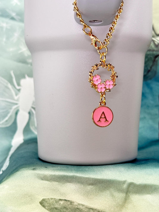 Enamel Flower Wreath Tumbler Charm: Gold Chain Initial, Stanley Cup Accessory