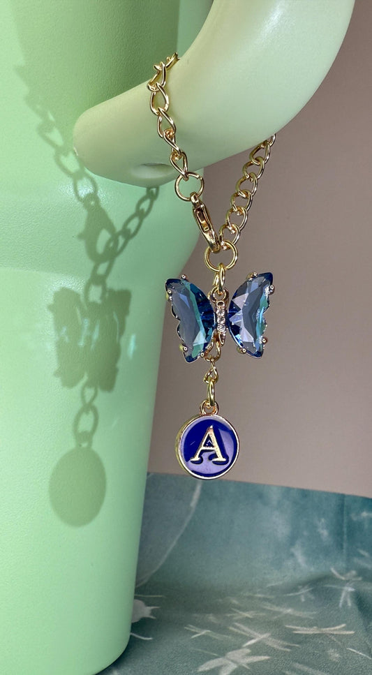 Crystal Butterfly Initial Tumbler Charm: Personalized Gold Chain Accessory