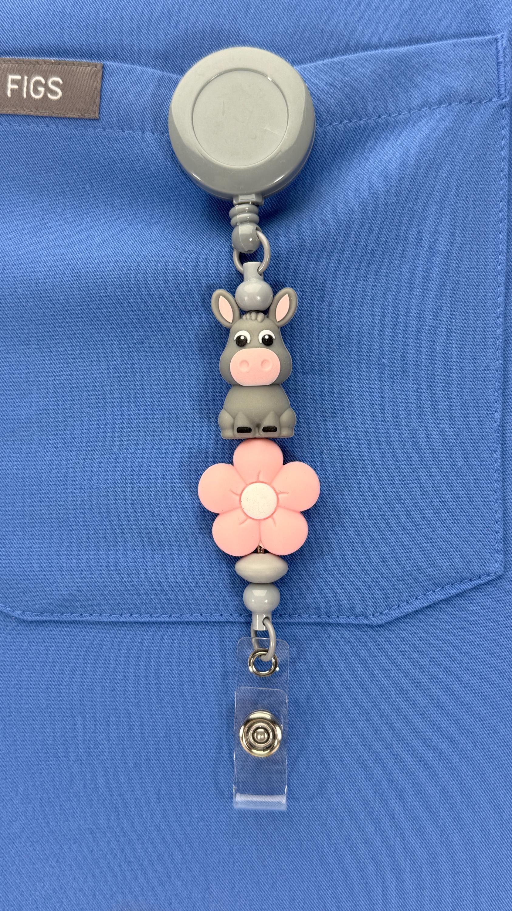 Animal Badge Reel: Mouse, Flower, & Silicone Beads - Retractable ID Clip