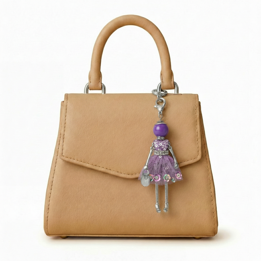 Elegant purple. Bijou Doll purse charm. A collectible bag accessory that adds a touch of whimsy to any handbag, backpack, or tote. Perfect gift for her.