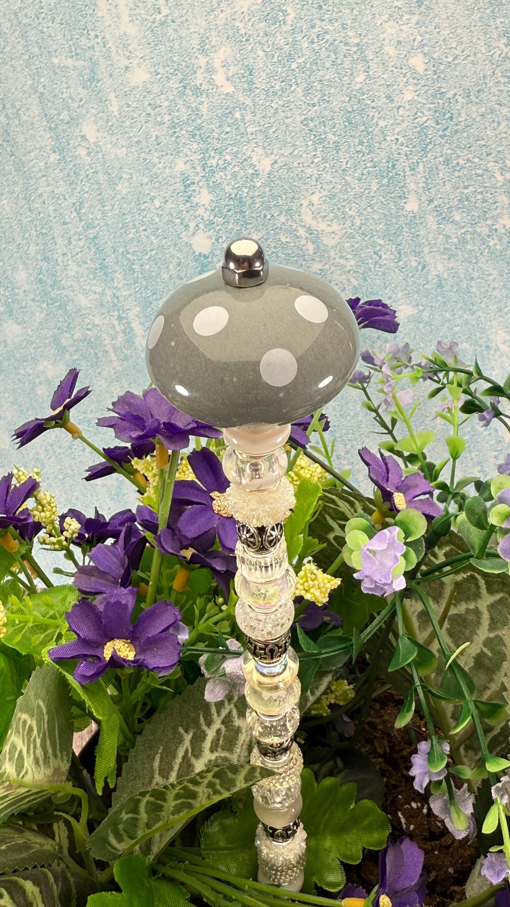 Fairy Garden Suncatcher Stakes – 15” Beaded Plant Decor with Whimsical polka dot Ceramic Topper
