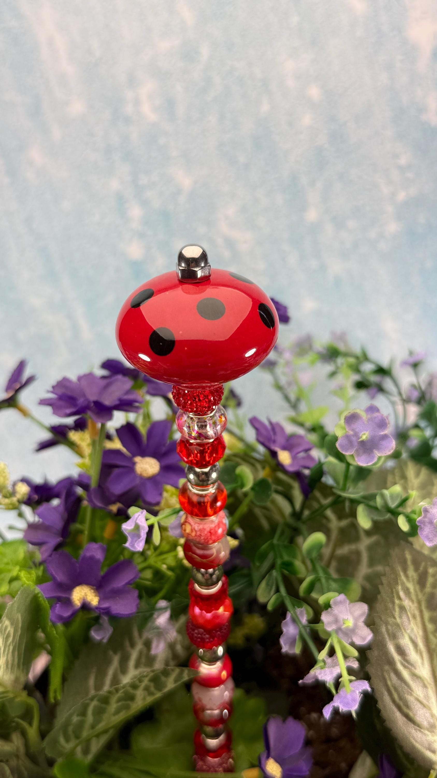 Fairy Garden Suncatcher Stakes – 15” Beaded Plant Decor with a whimsical polka dot ceramic topper.