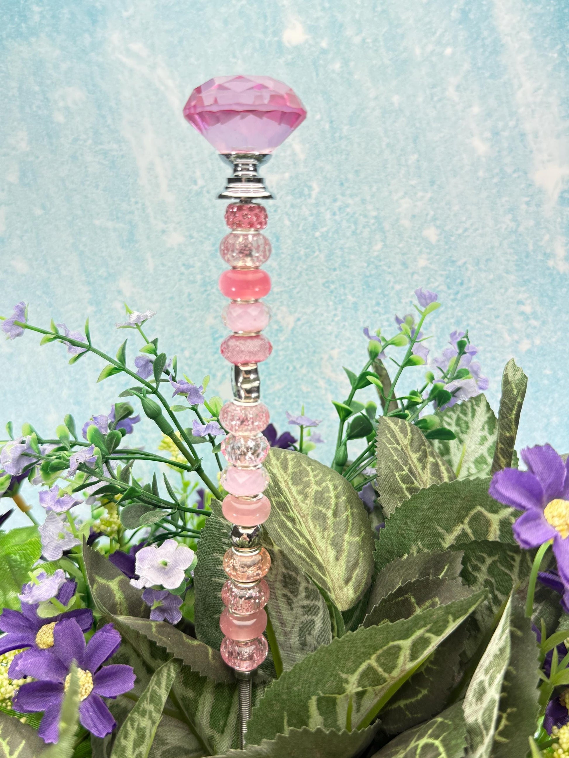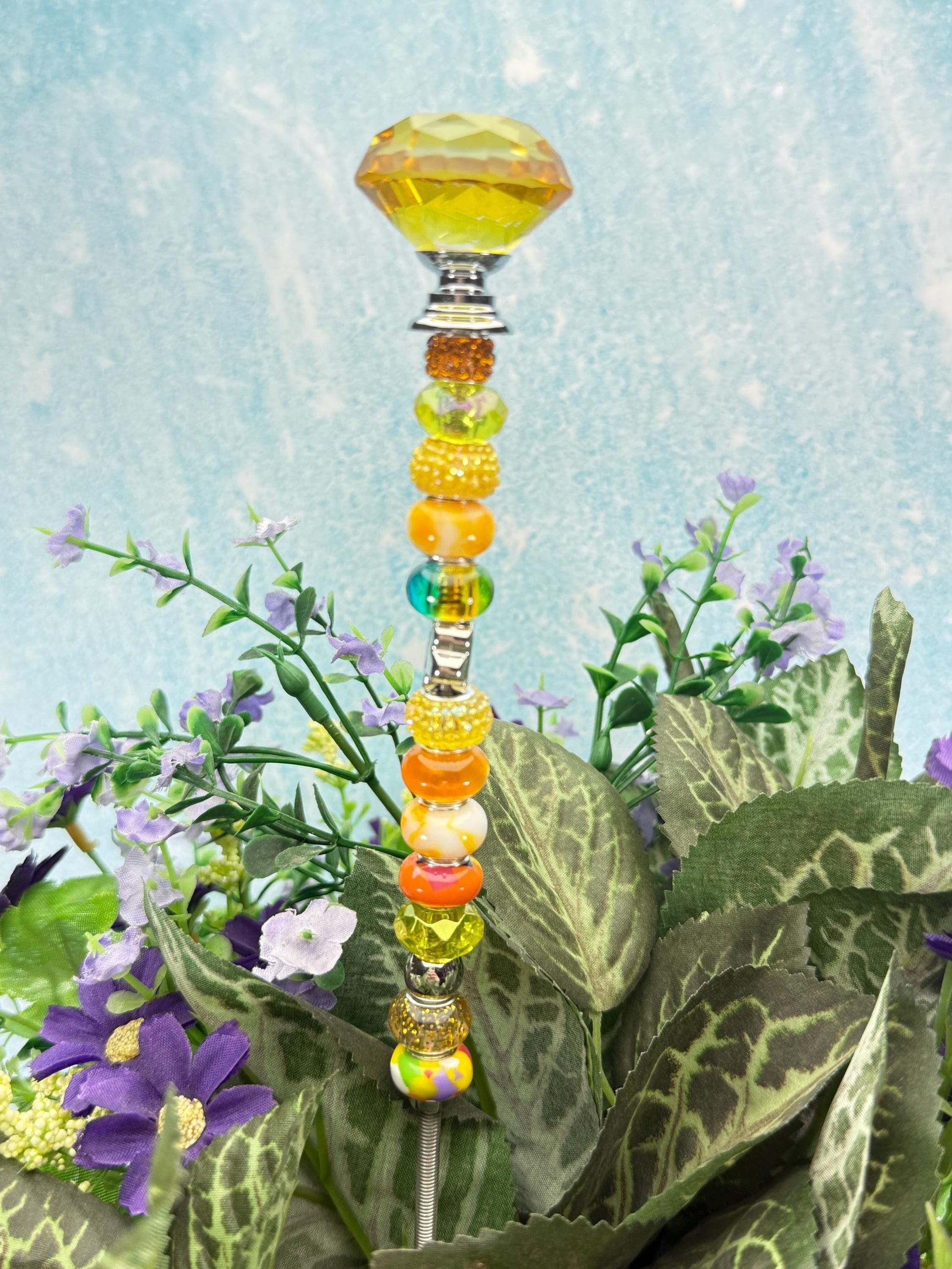 Fairy Garden Suncatcher Stakes – 15" Crystal-Topped Beaded Plant Decor for Fairy Gardens, Pots & Gifts