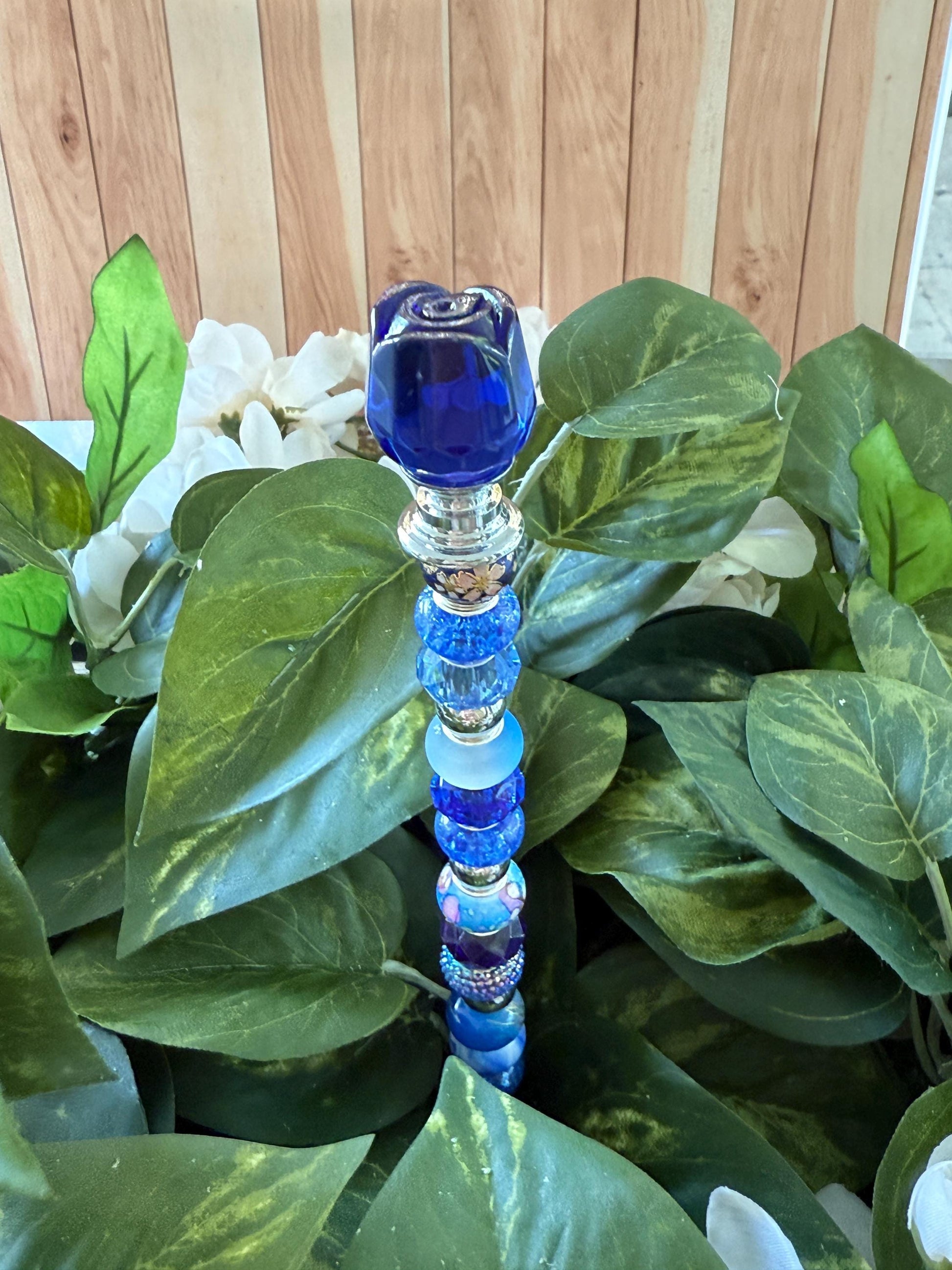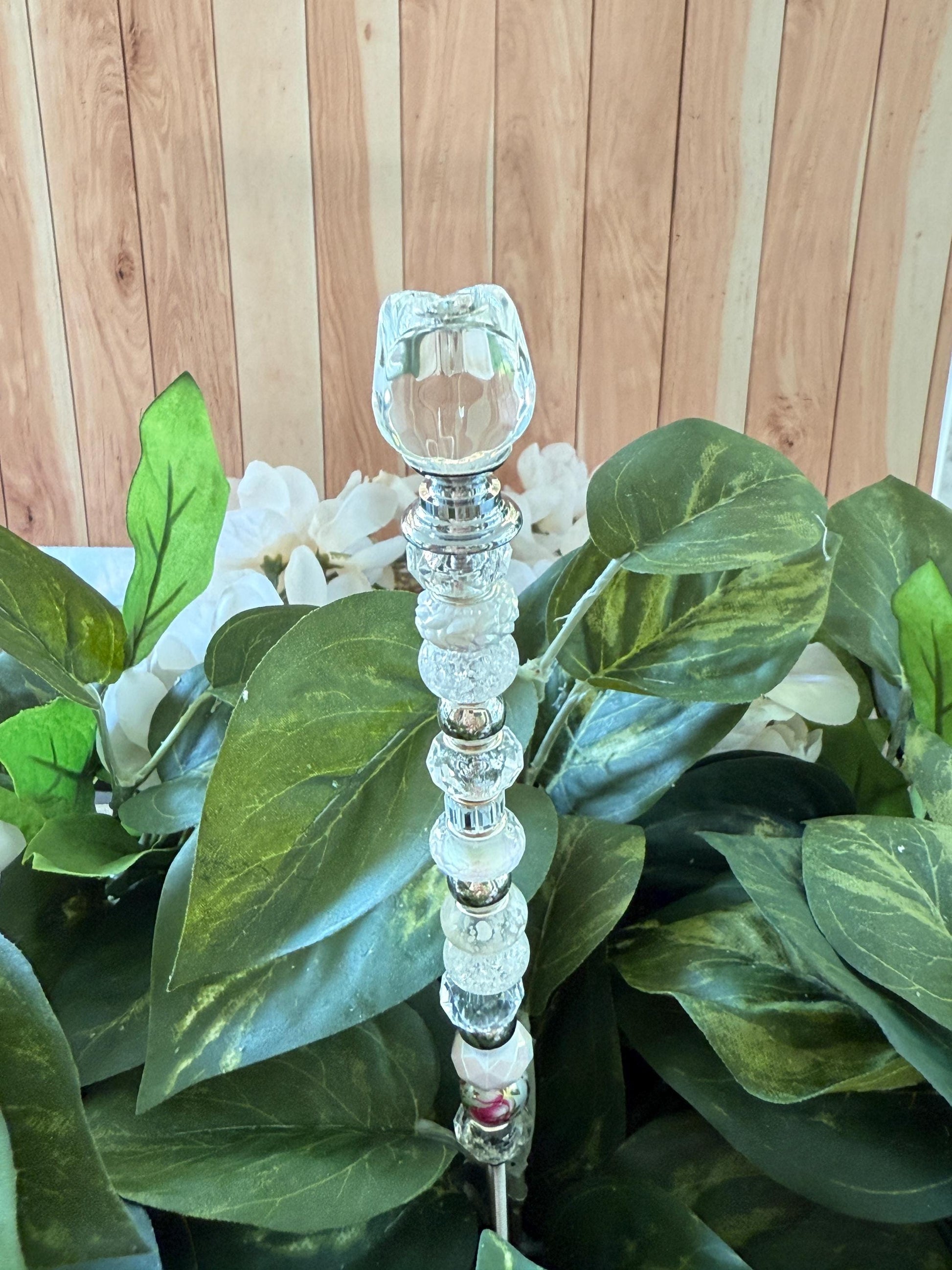 Add a touch of sparkle and whimsy to your garden, patio, or indoor plants with these handmade Fairy Garden Suncatcher Stakes. Each 10-inch stake is topped with a shimmering Glass Rose, accented with 15 hand-strung beads in coordinating tones. No two are alike—each is a miniature piece of garden jewelry that catches the sunlight and brings your plants to life.