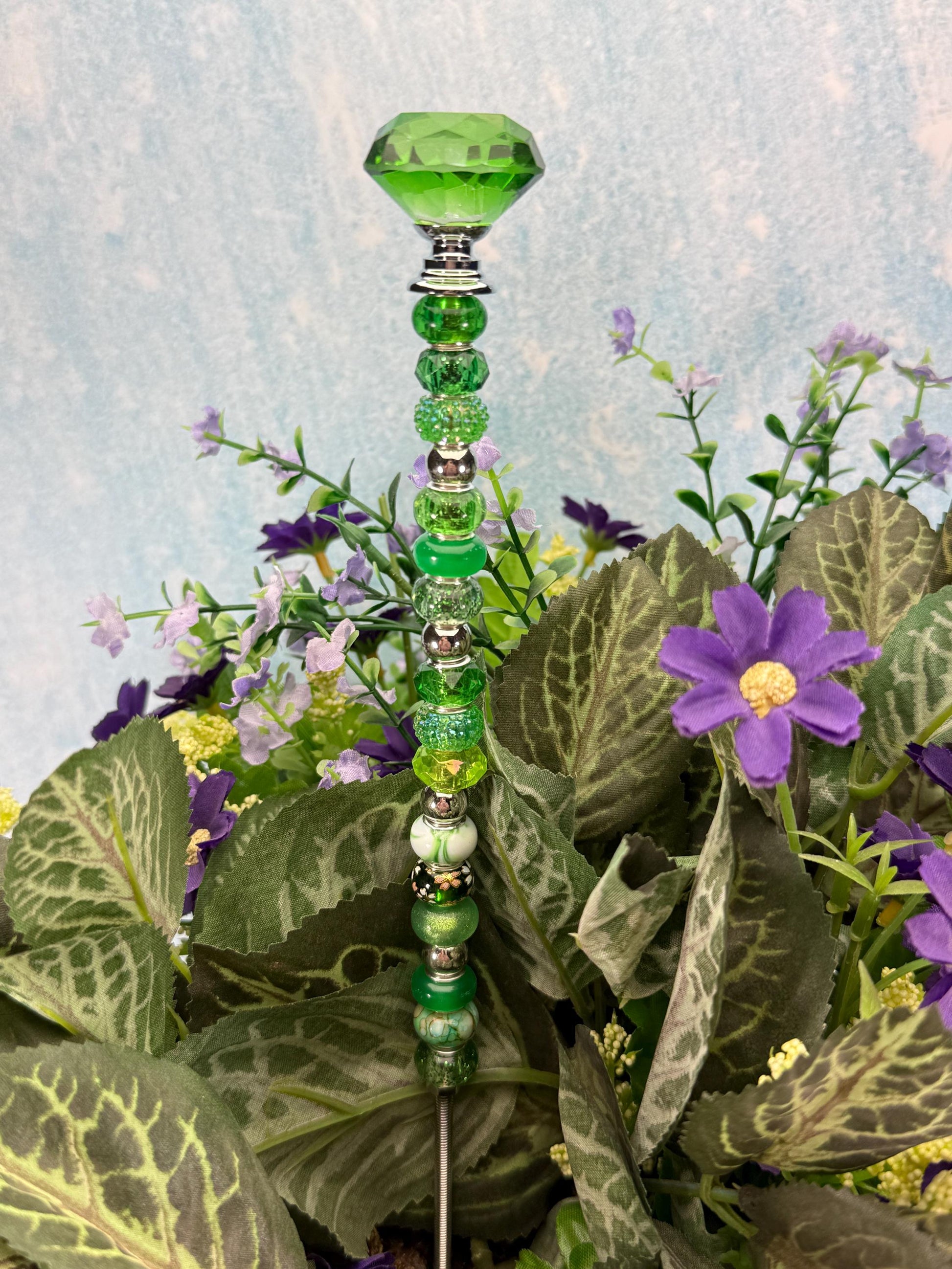 Materials: Glass topper, premium acrylic beads, silver-coloured accent beads, sturdy metal stake