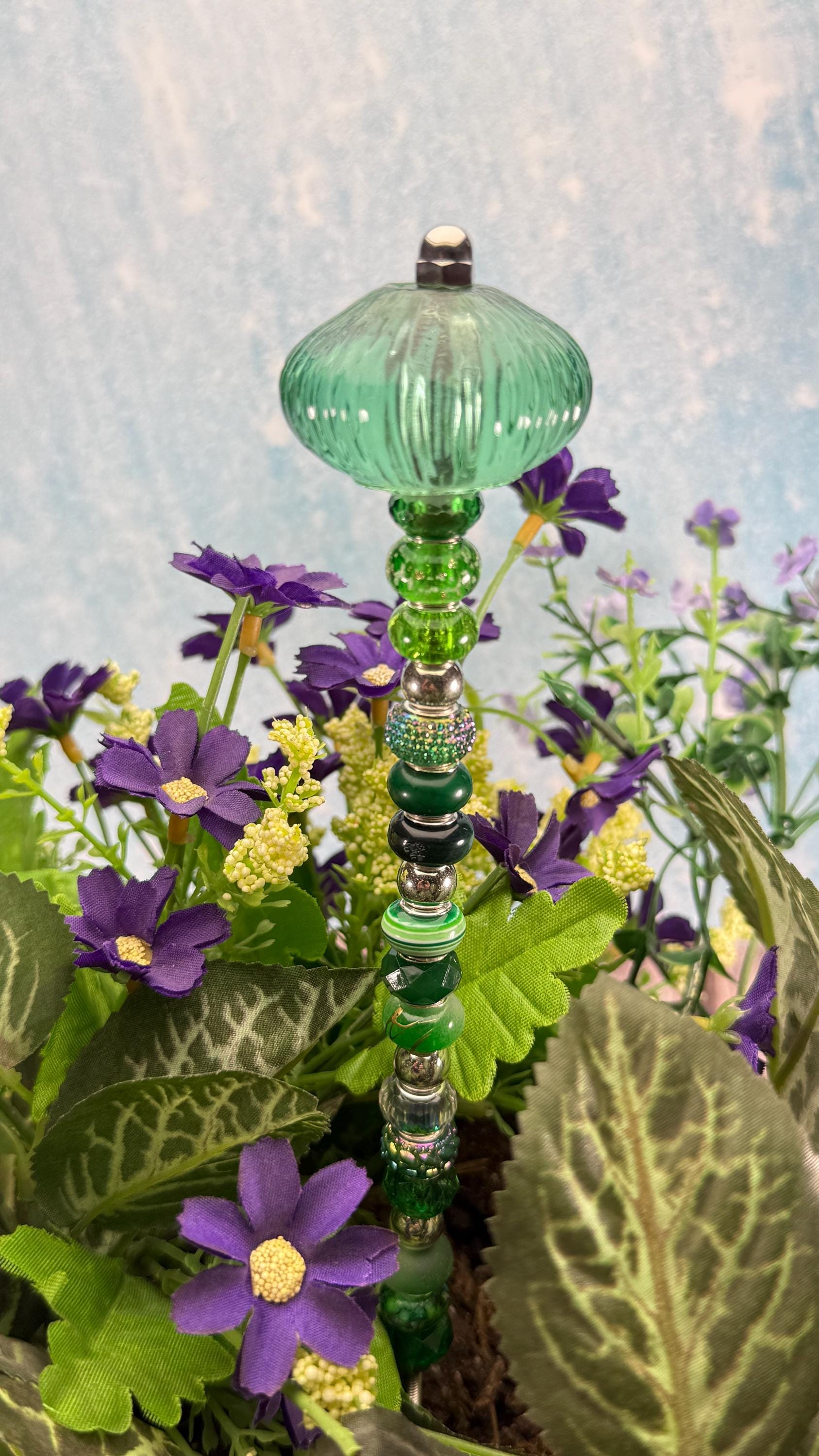 Whimsical Glass Garden Stakes – Beaded Garden Decor | Glass Topper Plant Stakes | Unique Garden Gift | Dragonfly Custom Accessories